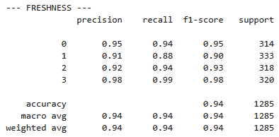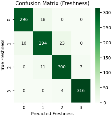 Evaluasi classification report dan confusion matrix untuk tugas kematangan (freshness) pisang